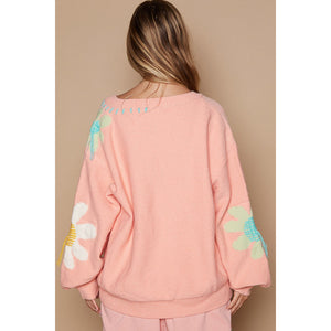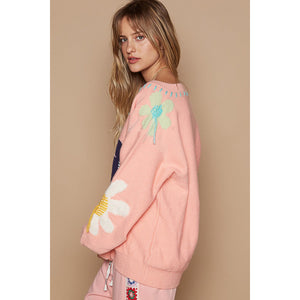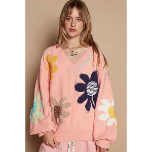 POL V-Neck Long Sleeve Flower Fringe Sweater