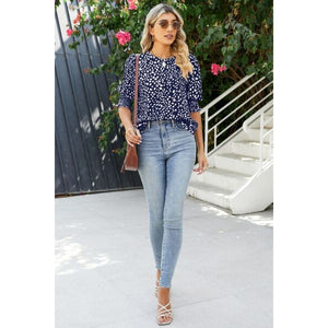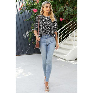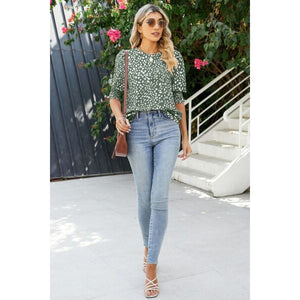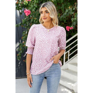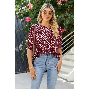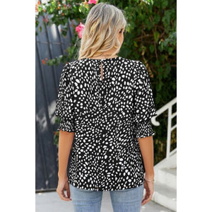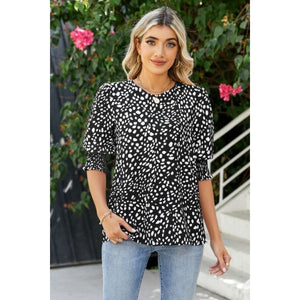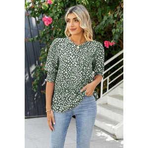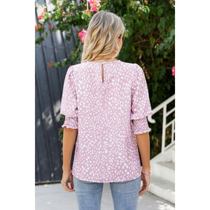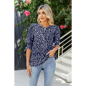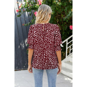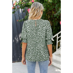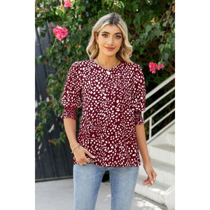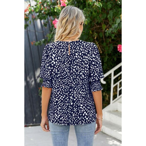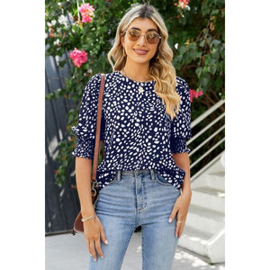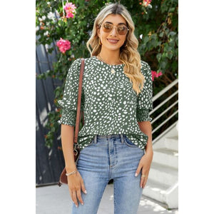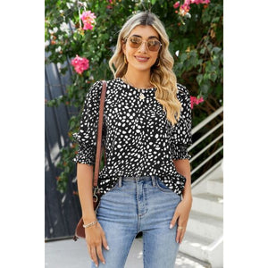 Polka Dot Round Neck Lantern Sleeve Blouse
