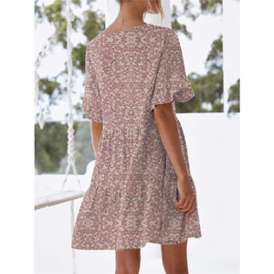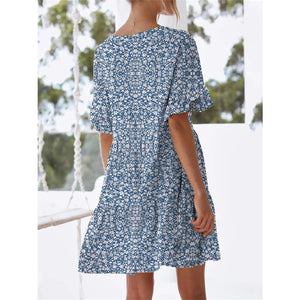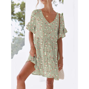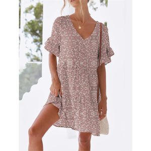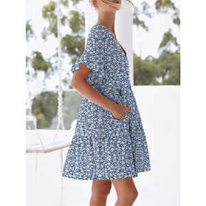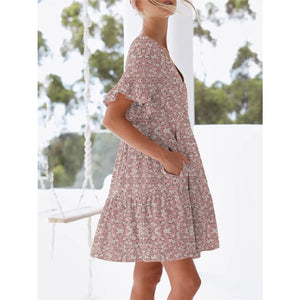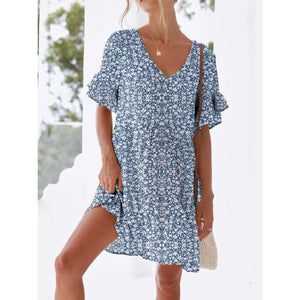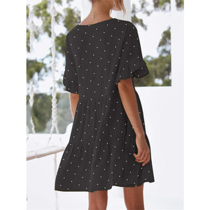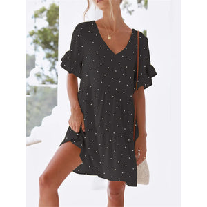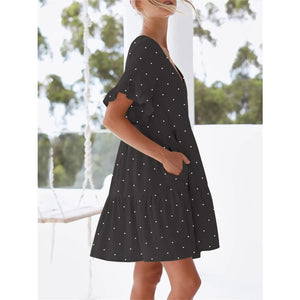 Polka Dot V-Neck Short Sleeve Mini Dress