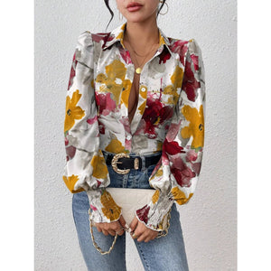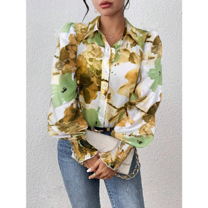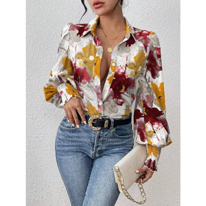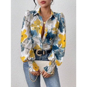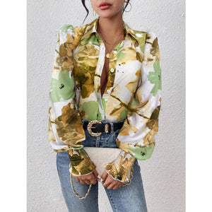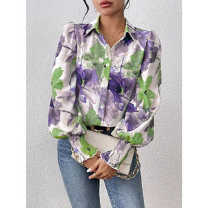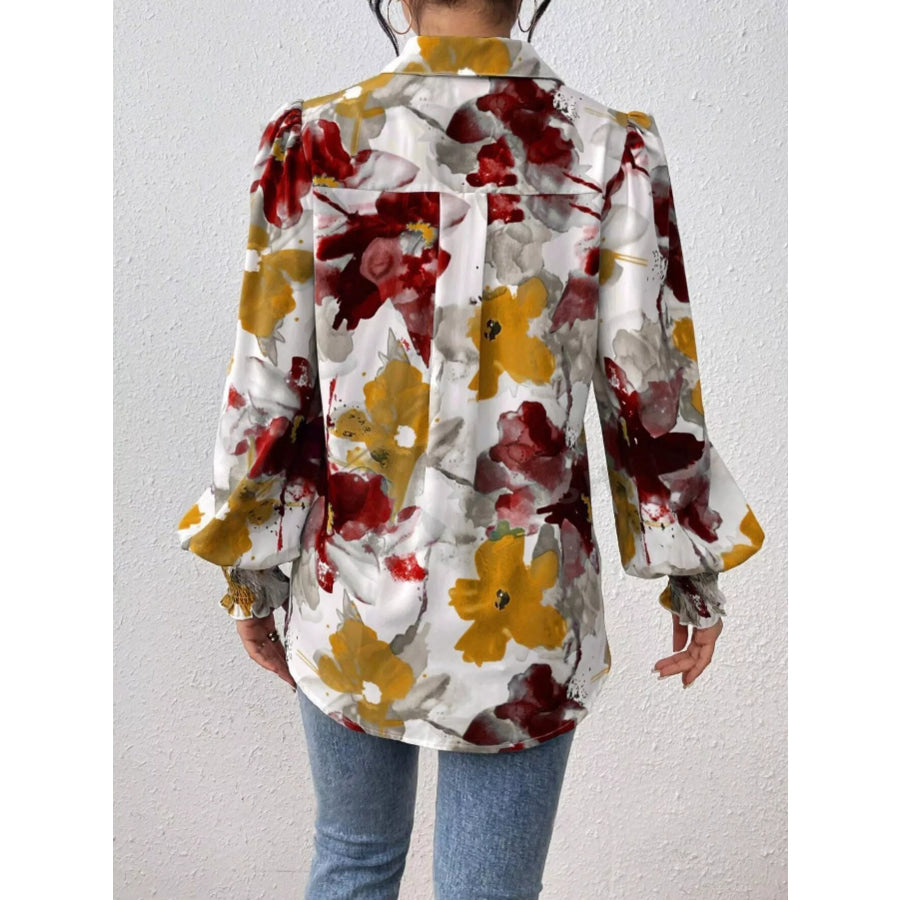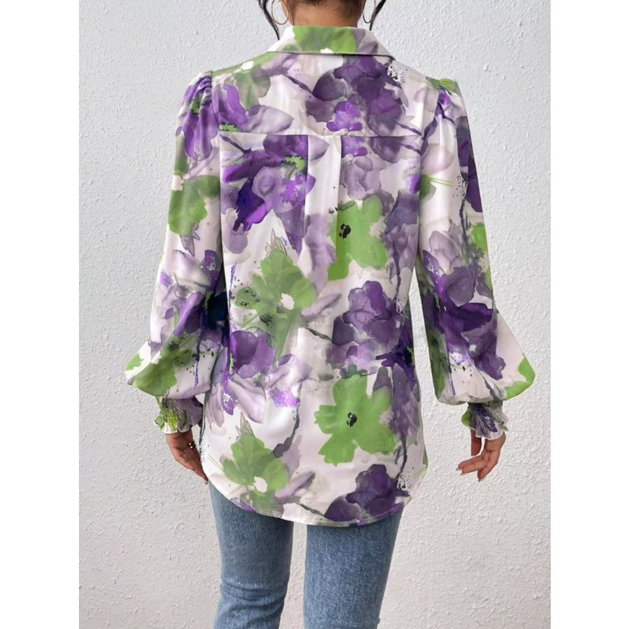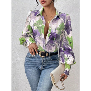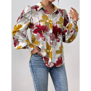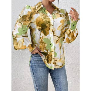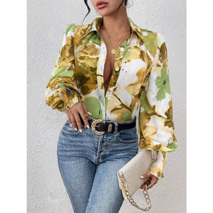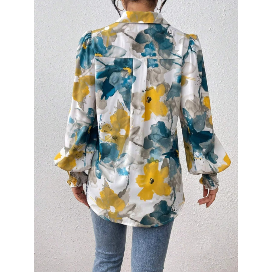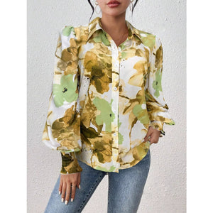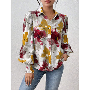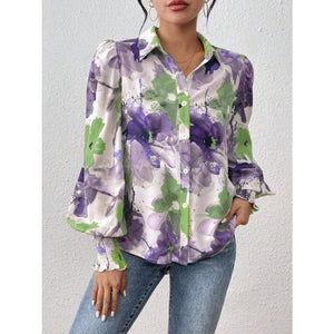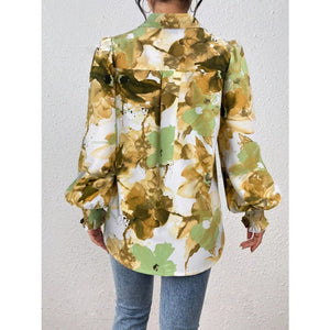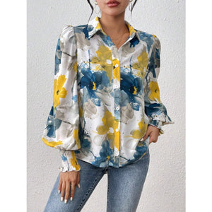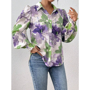 Printed Button Up Lantern Sleeve Shirt