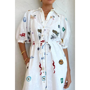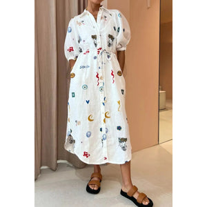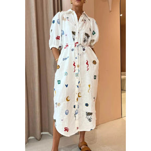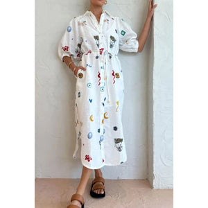 Printed Button-Up Midi Shirt Dress