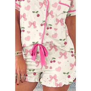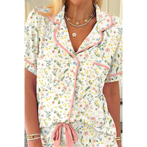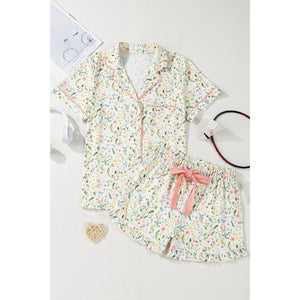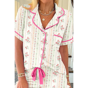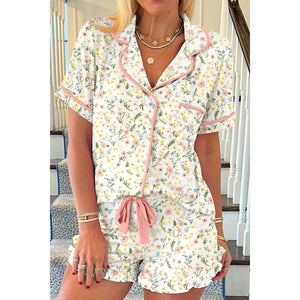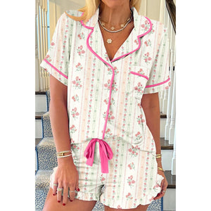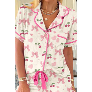 Printed Button Up Short Sleeve Top and Shorts Lounge Set