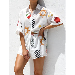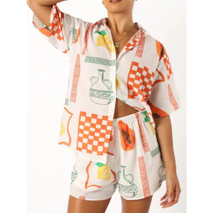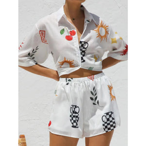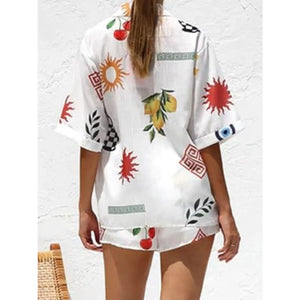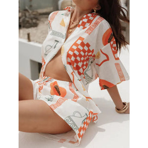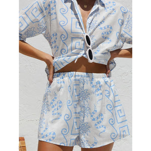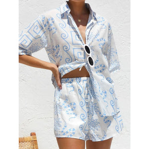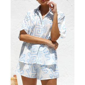 Printed Button Up Top and Shorts Set