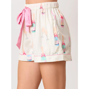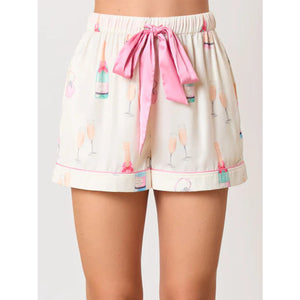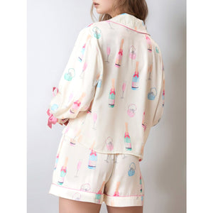Printed Collared Neck Flounce Sleeve Top and Shorts Lounge Set