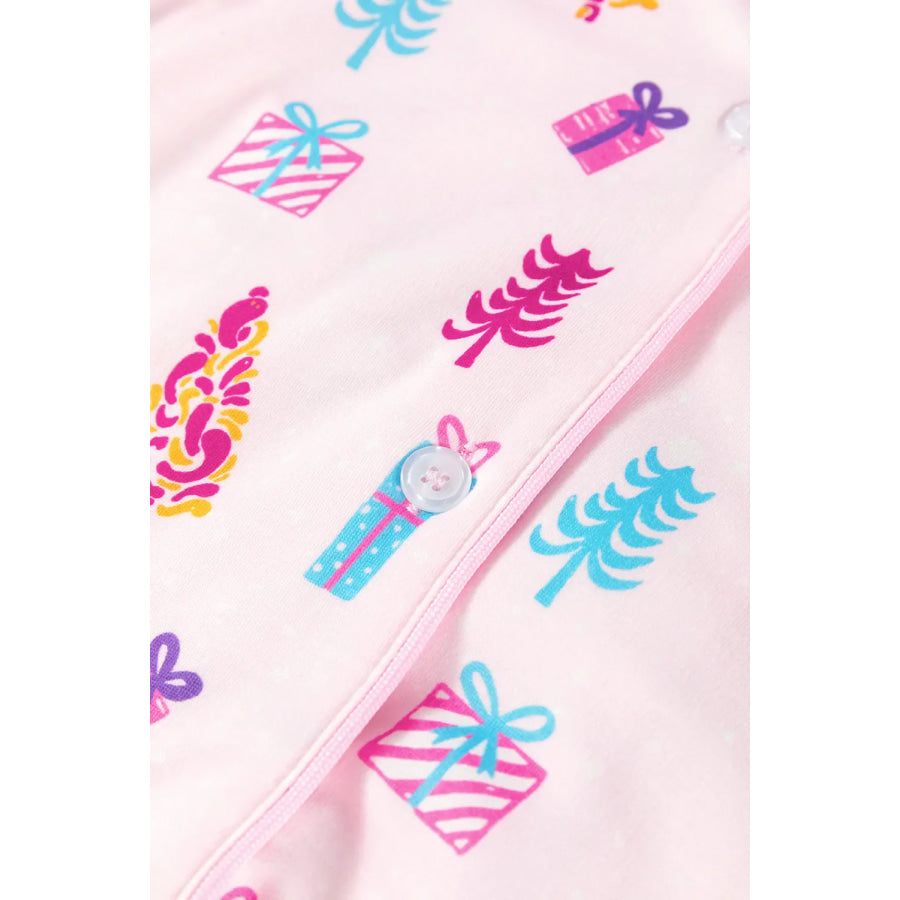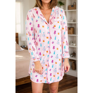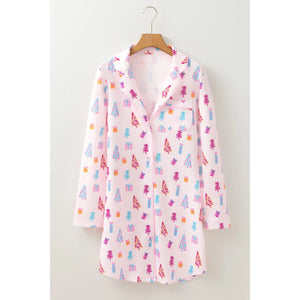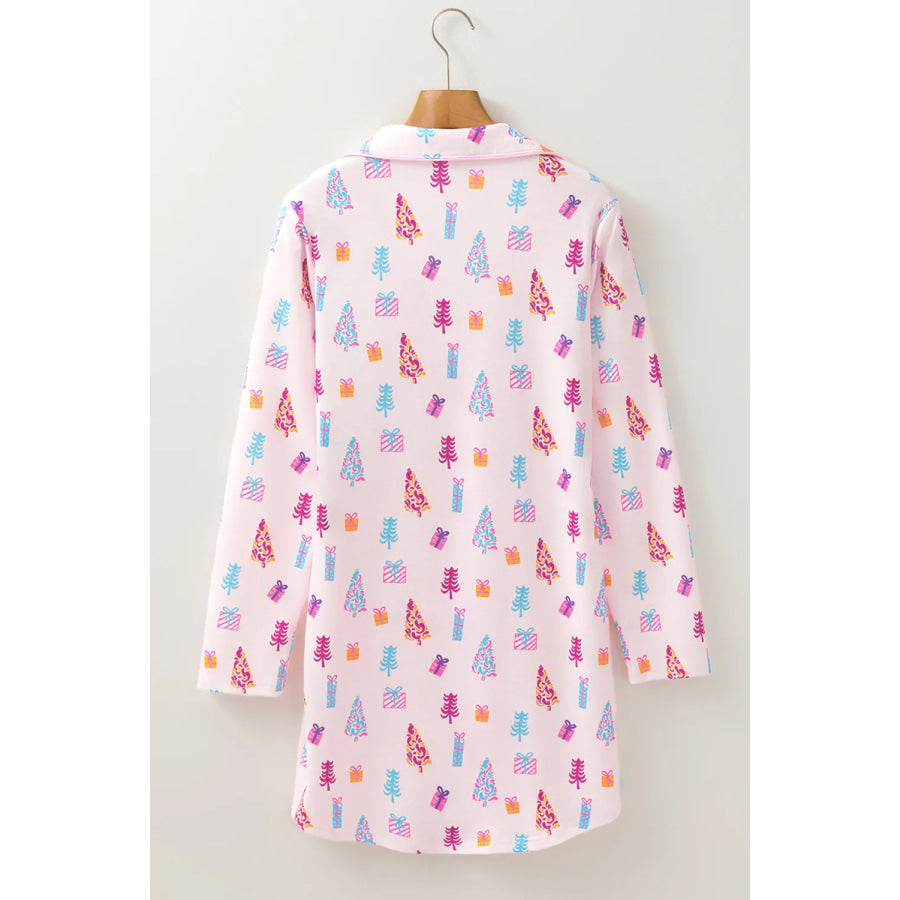 Printed Collared Neck Long Sleeve Lounge Dress