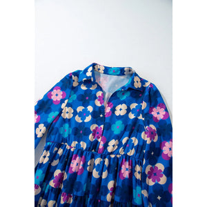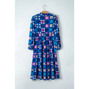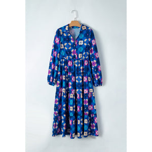 Printed Collared Neck Long Sleeve Midi Dress