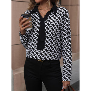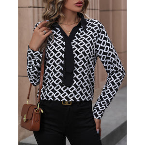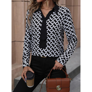 Printed Collared Neck Long Sleeve Shirt