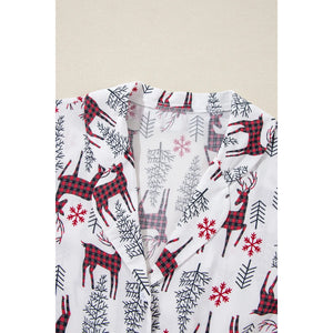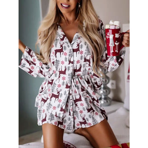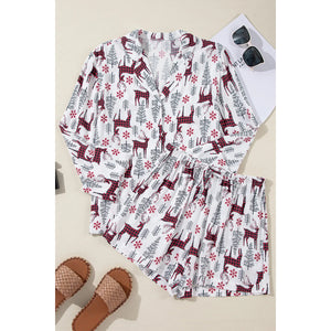 Printed Collared Neck Long Sleeve Top and Shorts Lounge Set