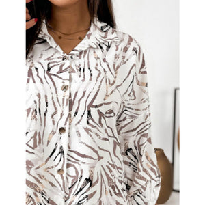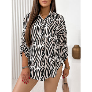Printed Collared Neck Roll-Tab Sleeve Shirt
