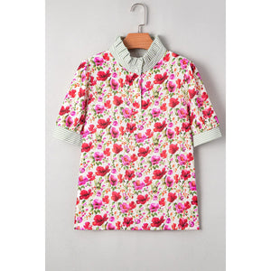 Printed Collared Neck Short Sleeve Blouse
