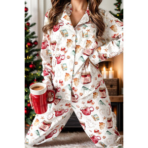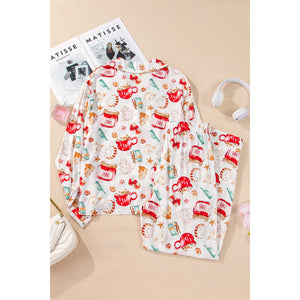 Printed Collared Neck Top and Pants Lounge Set