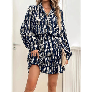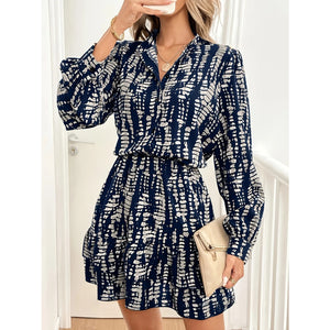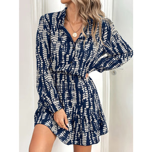 Printed Long Sleeve Shirt Dress
