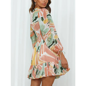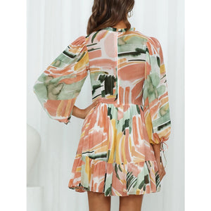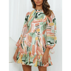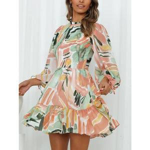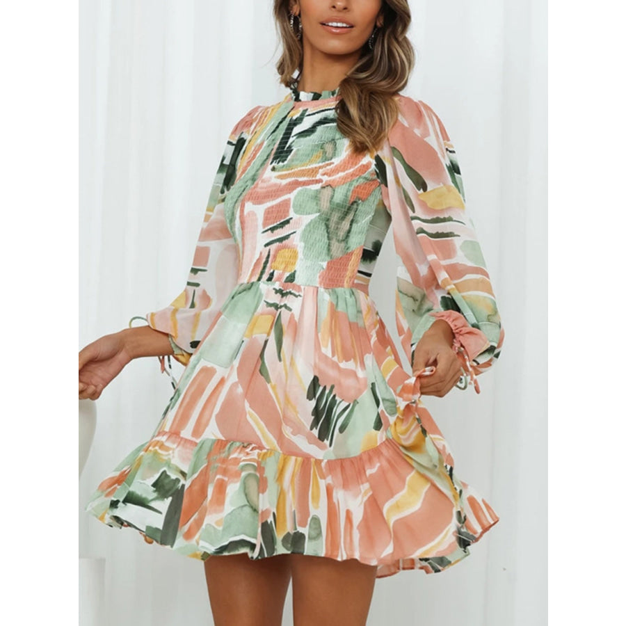 Printed Mock Neck Balloon Sleeve Mini Dress