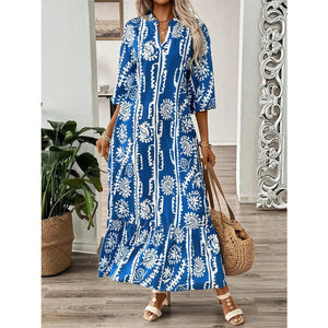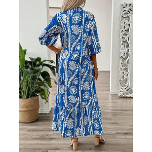 Printed Notched Half Sleeve Maxi Dress
