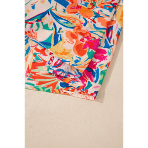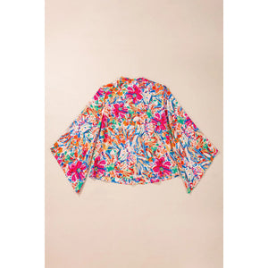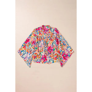 Printed Notched Long Sleeve Blouse