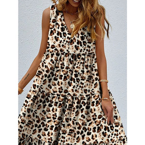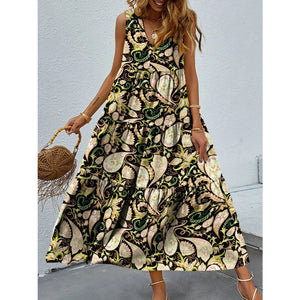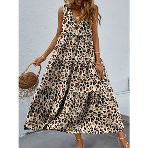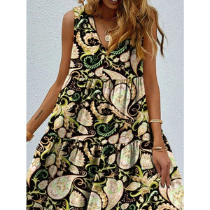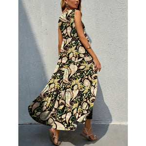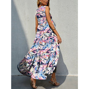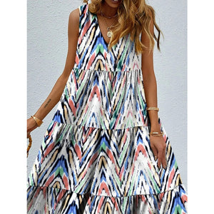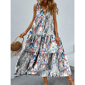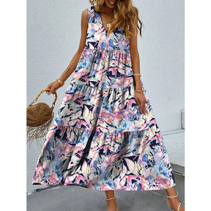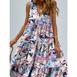 Printed V-Neck Tiered Maxi Tank Dress