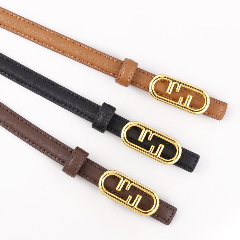Buckle Leather Skinny Belt