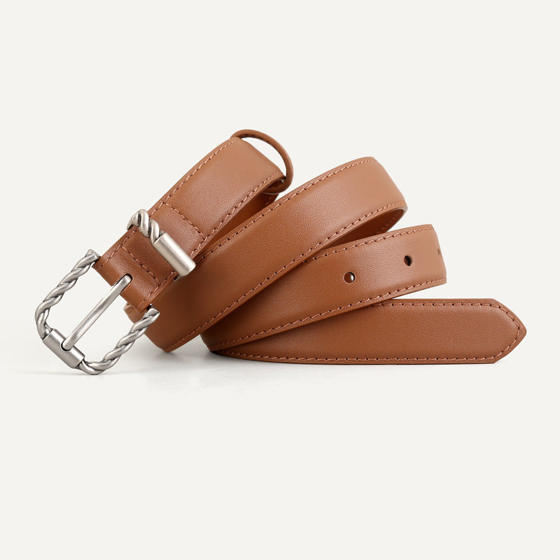 Leather Belt with Twisted Buckle