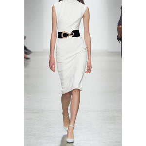 Ribbed Alloy Buckle Elastic Belt