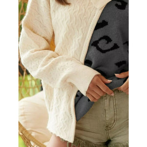 BiBi Cable-Knit Color Block One Shoulder Asymmetrical Sweater