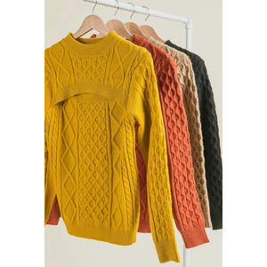 The Cable-Knit Sweater with Cut Out Chest Detail is a stylish and modern twist on a classic knitwear staple. The intricate cable-knit pattern adds texture and depth to the sweater. The cut-out chest detail offers a touch of edginess and allure, making it a statement piece. Perfect for adding a hint of skin while staying cozy and warm. Pair this sweater with high-waisted jeans or a skirt for a chic and fashionable look that's sure to turn heads. Elevate your winter wardrobe with the Cable-Knit Sweater with Cut Out Chest Detail for a trendy and contemporary ensemble.