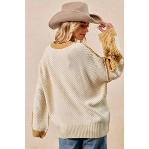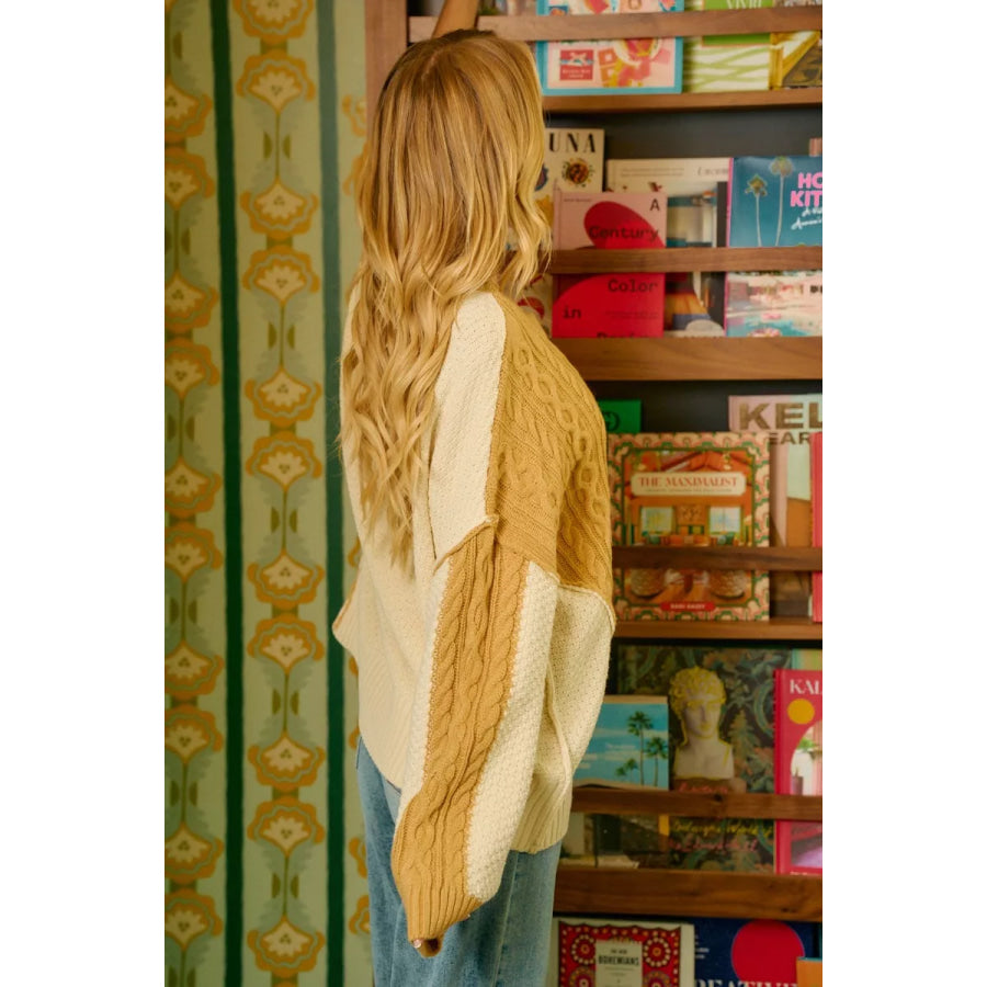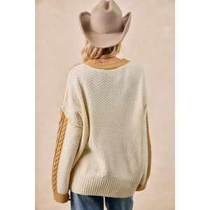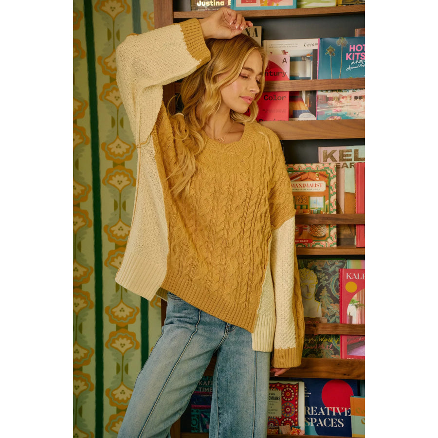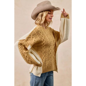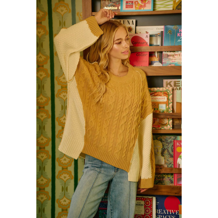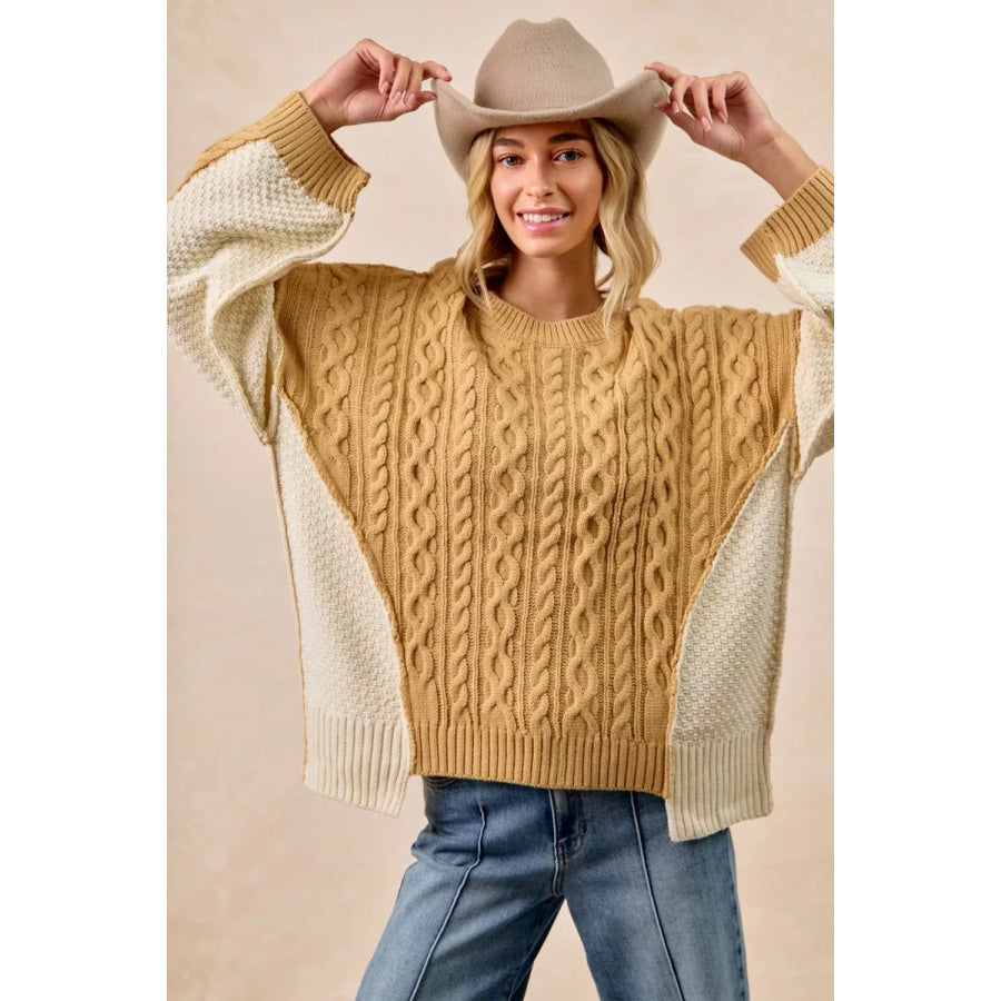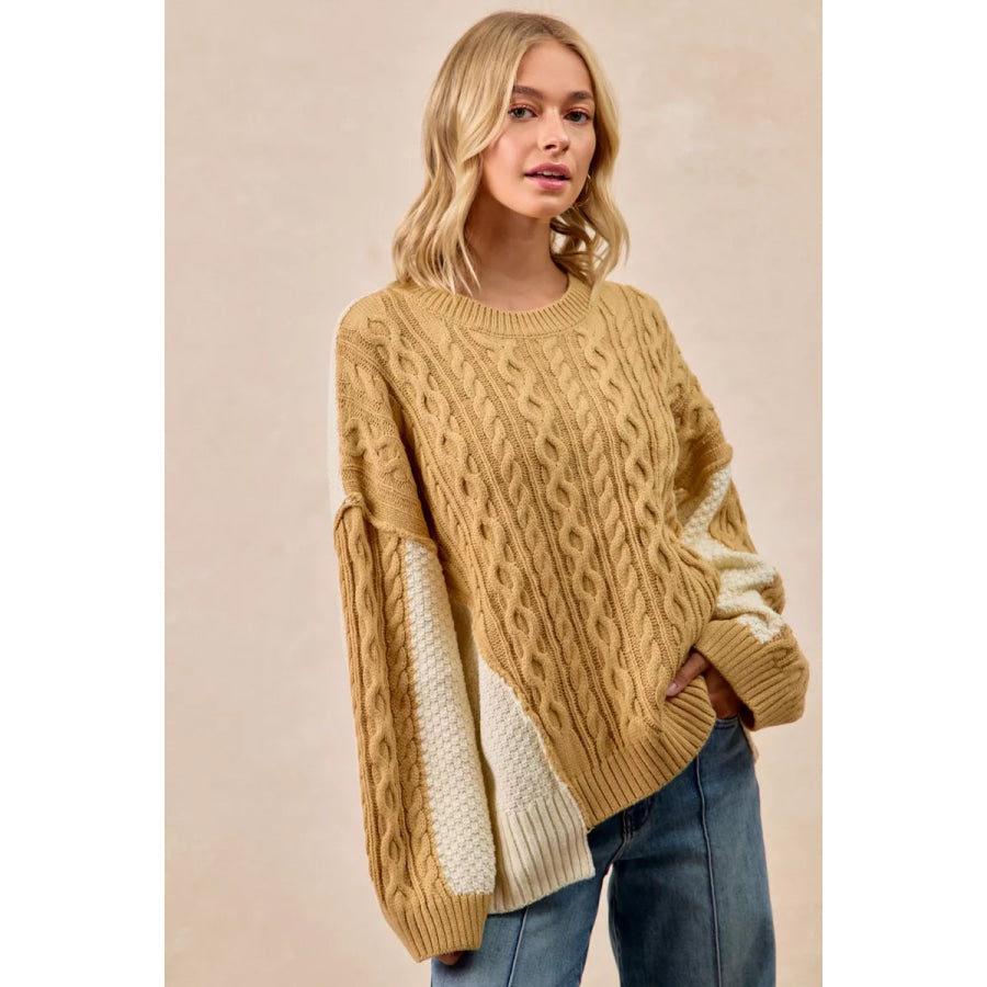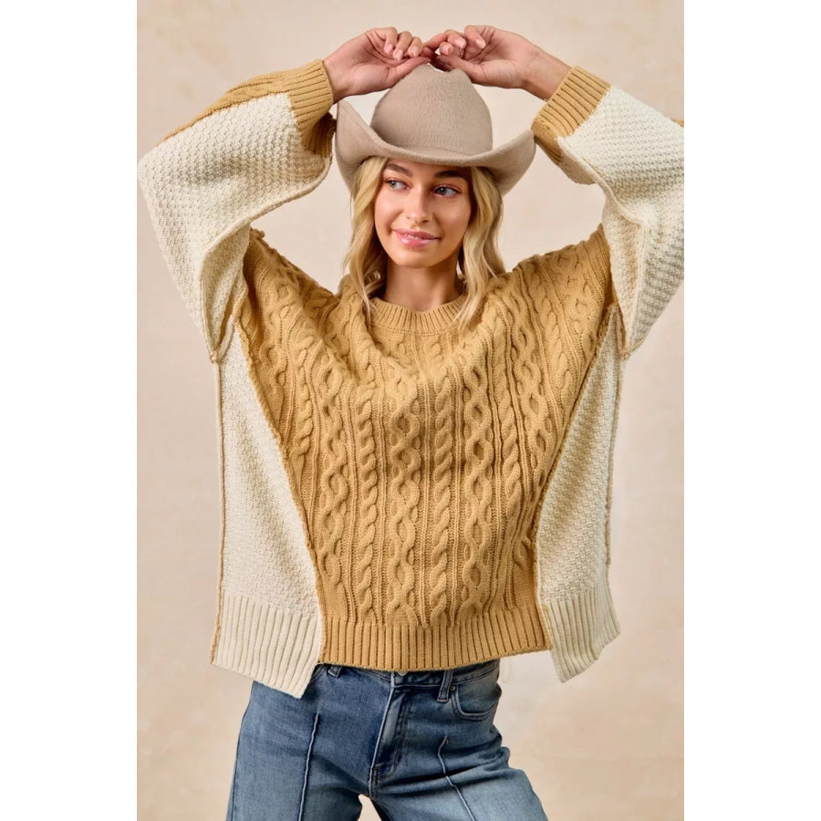 BiBi Cable Knit With Hacci Combo Sweater With Uneven Hem Detail