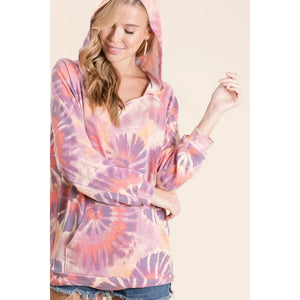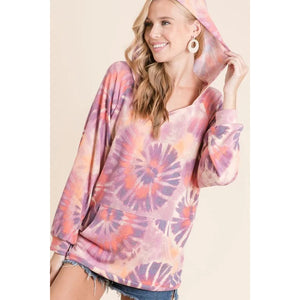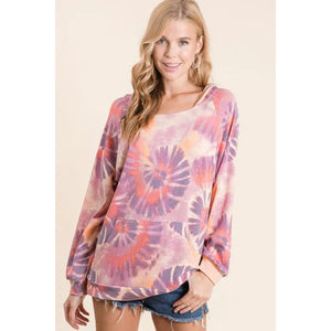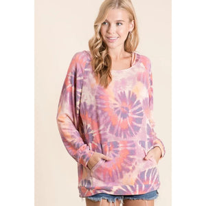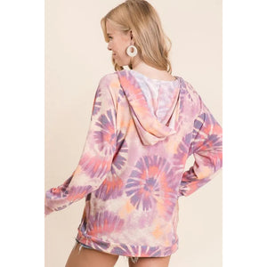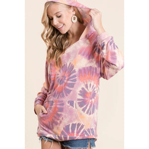 BiBi Circular Tie Dye Print Terry Hoodie with Kangaroo