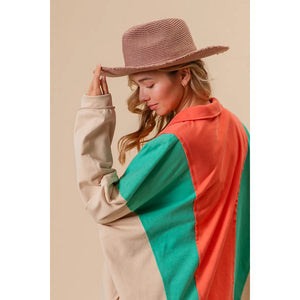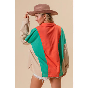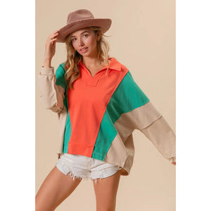 The Colorblock Exposed Seam French Terry Sweatshirt is a trendy and comfortable piece for your casual wardrobe. The colorblock design adds a modern and stylish touch to the sweatshirt. With exposed seams, it creates a unique and edgy look. Perfect for a cozy yet fashionable statement, this sweatshirt is versatile for everyday wear. Elevate your casual look with the on-trend Colorblock Exposed Seam French Terry Sweatshirt today!