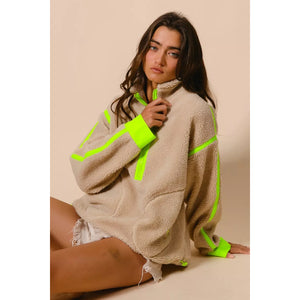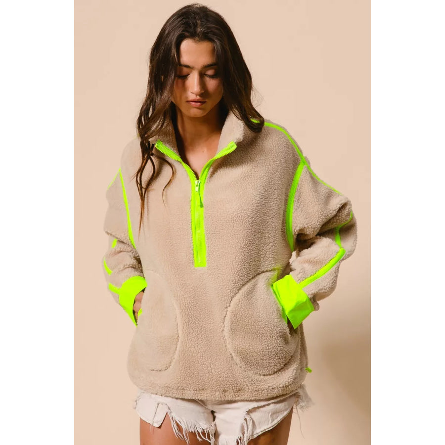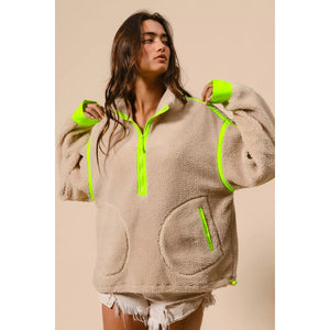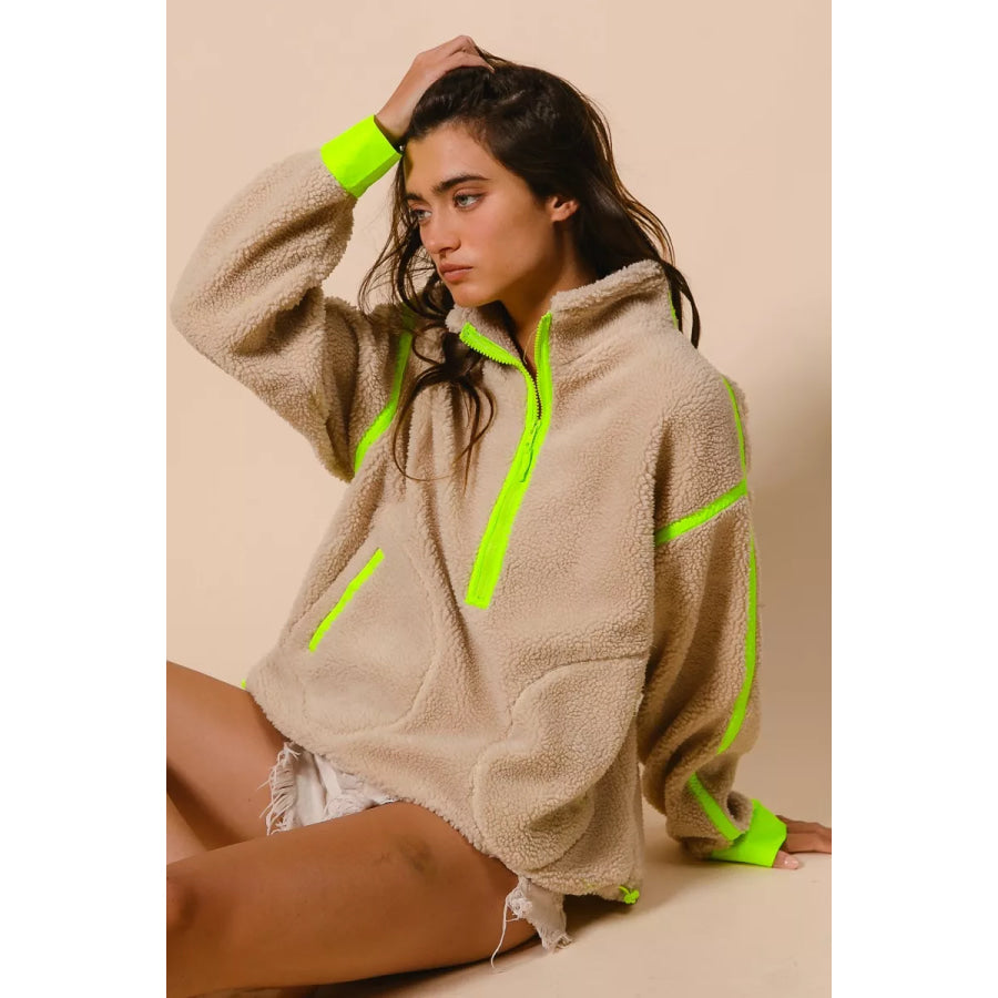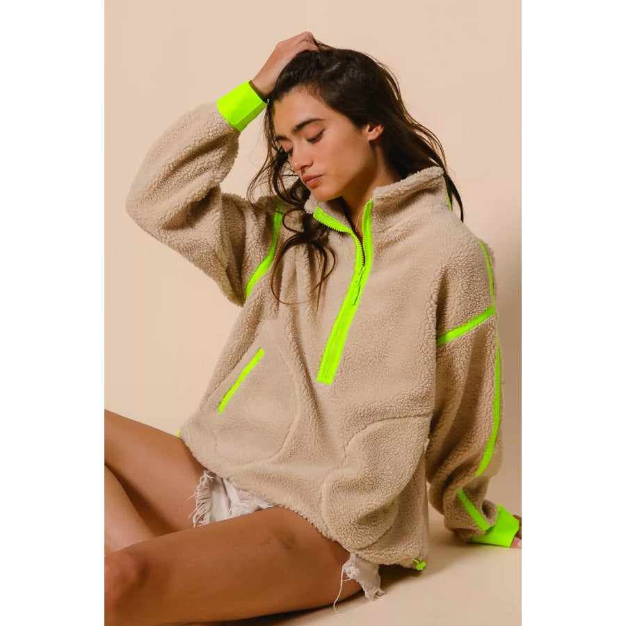 BiBi Contrast Edge Half Zip Up Sherpa Jacket