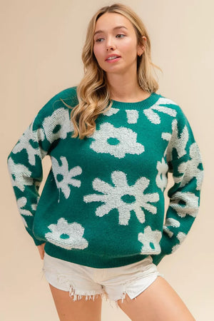 BiBi Flower Pattern Long Sleeves Sweater Top