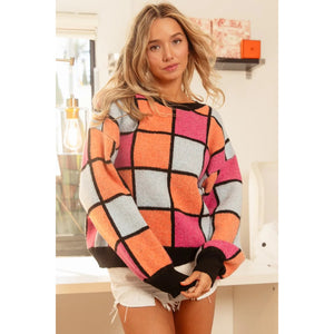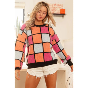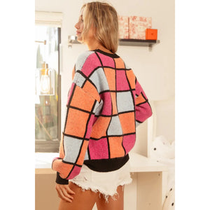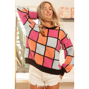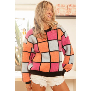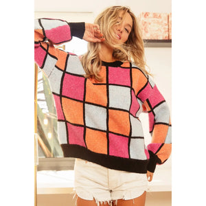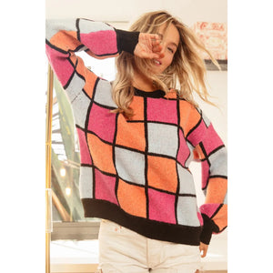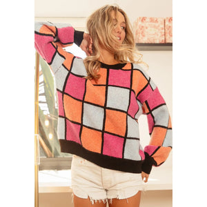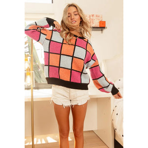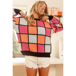 The Multi Color Checker Pattern Sweater is a fun and eye-catching addition to your knitwear collection. Featuring a checker pattern in multiple colors, this sweater offers a vibrant and playful look. The design is stylish yet versatile, making it easy to pair with different bottoms for various occasions. Crafted from cozy and warm material, this sweater is perfect for staying stylish and comfortable in cooler weather. Make a bold statement with this unique and trendy checker pattern sweater.
