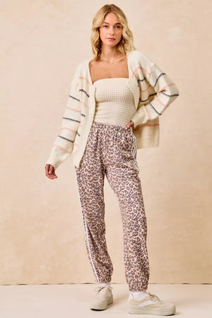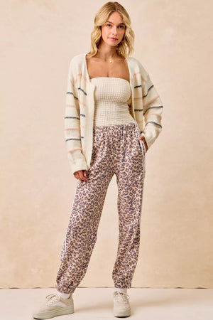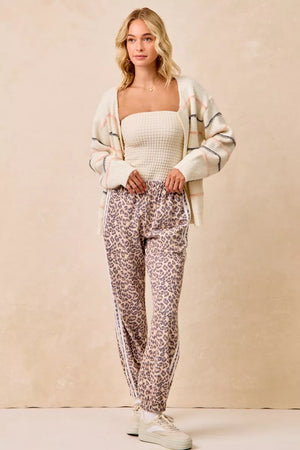 The Side Lines Leopard Track Pants are a stylish and trendy addition to your casual wardrobe. Featuring a leopard print design along the sides, these track pants add a bold and edgy touch to your look. The comfortable fabric and relaxed fit make them perfect for both lounging at home and running errands in style. Pair them with a simple t-shirt or a cropped hoodie for a chic and on-trend outfit. Stand out with confidence in the Side Lines Leopard Track Pants.
