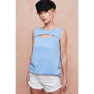 BiBi Soft Rib Knit with Cut Out Front Sleeveless Top