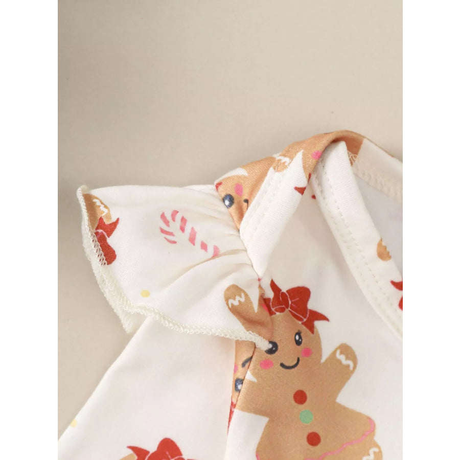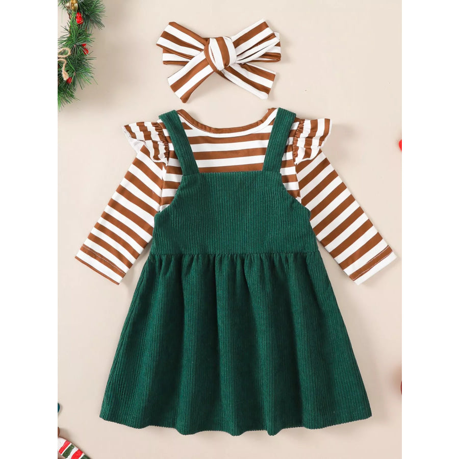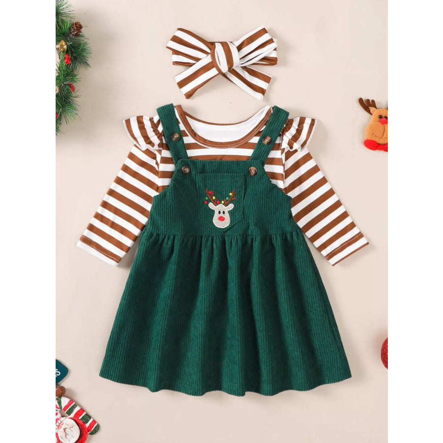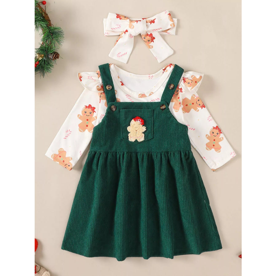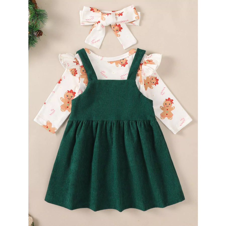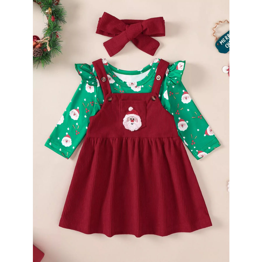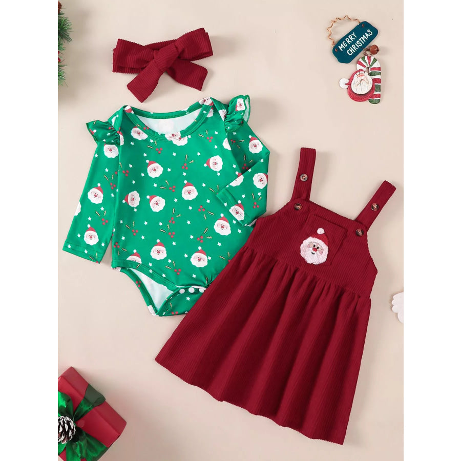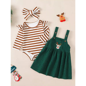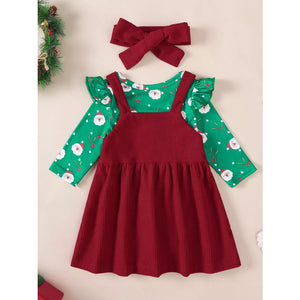 Children's Christmas Bodysuit and Overall Dress Set with Headband