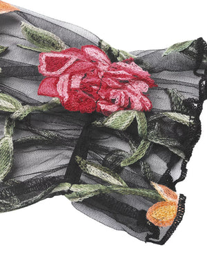 Floral Embroidered Mesh Long Sleeve Bodysuit