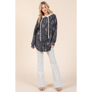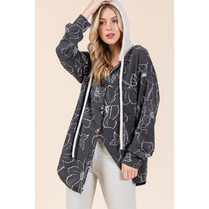 BOMBOM Drawstring Flower Print Button Up Shacket