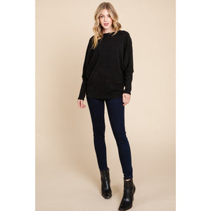 Elevate your casual look with this Long Dolman Sleeves Soft Rib Knit Top, offering a relaxed fit with a touch of style. Designed with a round neck and crafted from soft rib knit material, this top ensures both comfort and fashion in one. The dolman sleeves add a modern twist to the classic silhouette, making it a versatile piece for everyday wear. Whether you dress it up or down, this top is a trendy and chic addition to your wardrobe. Stay comfortable and stylish all day long with this fashionable rib knit top.