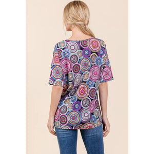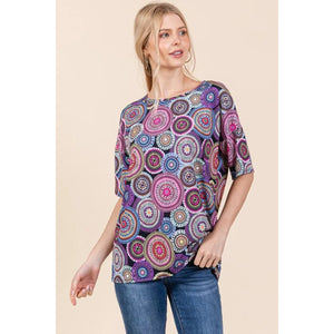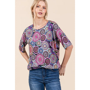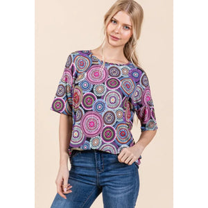 The printed round neck half sleeve top is a stylish and versatile piece featuring a classic neckline and flattering half sleeves. This top is perfect for adding a pop of color or pattern to your outfit. It can be easily dressed up or down for various occasions, making it a versatile addition to your wardrobe.