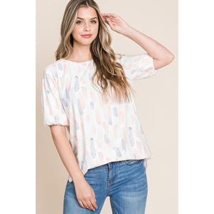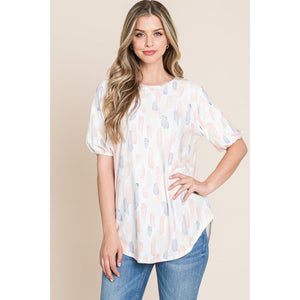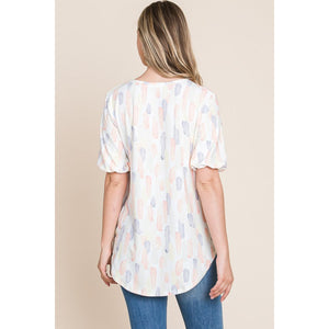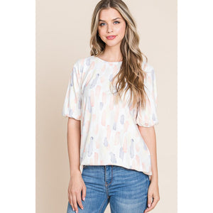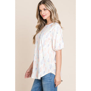 BOMBOM Round Neck Puff Short Sleeve Blouse