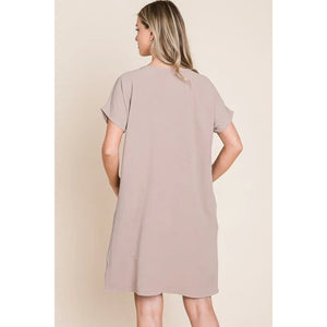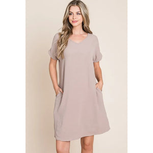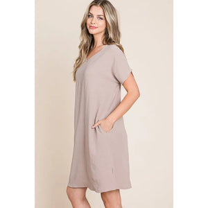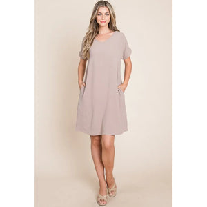 BOMBOM V-Neck Short Sleeve Dress with Pockets