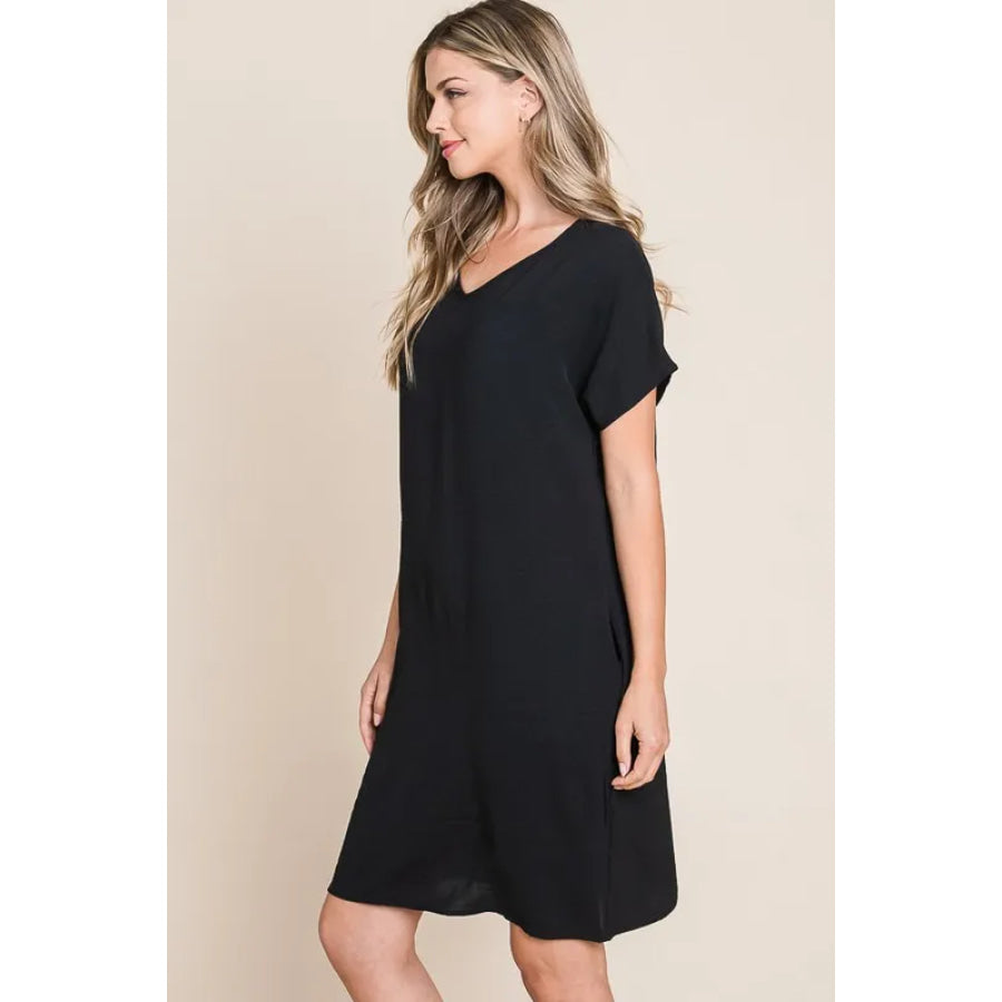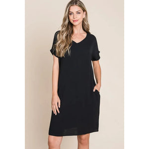 BOMBOM V-Neck Short Sleeve Dress with Pockets