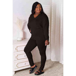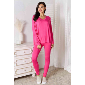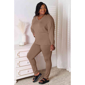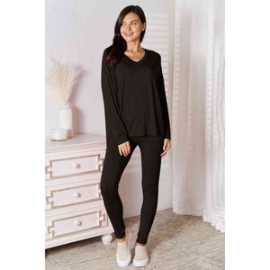 Basic Bae Full Size V-Neck Soft Rayon Long Sleeve Top and Pants Lounge Set