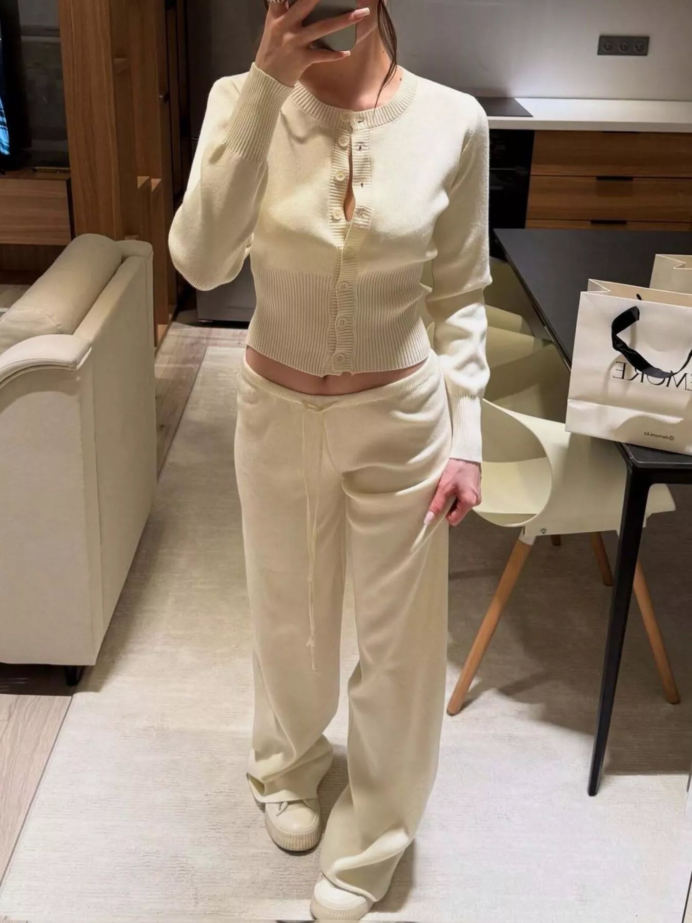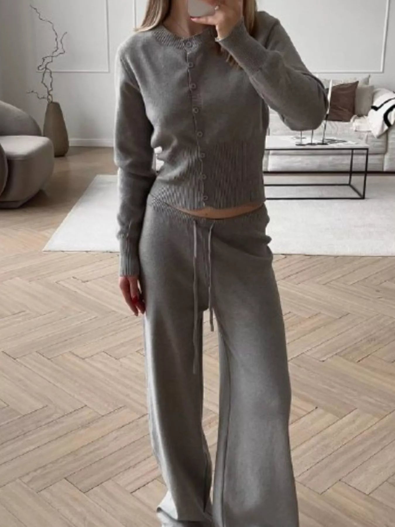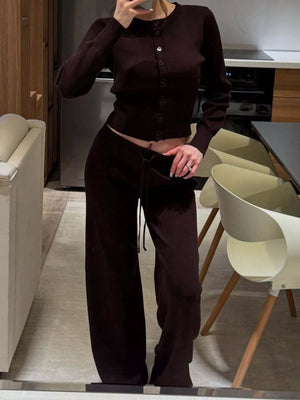 Button Up Cardigan and Pants Knit Set
