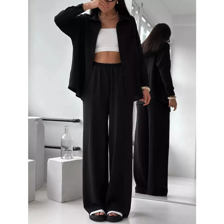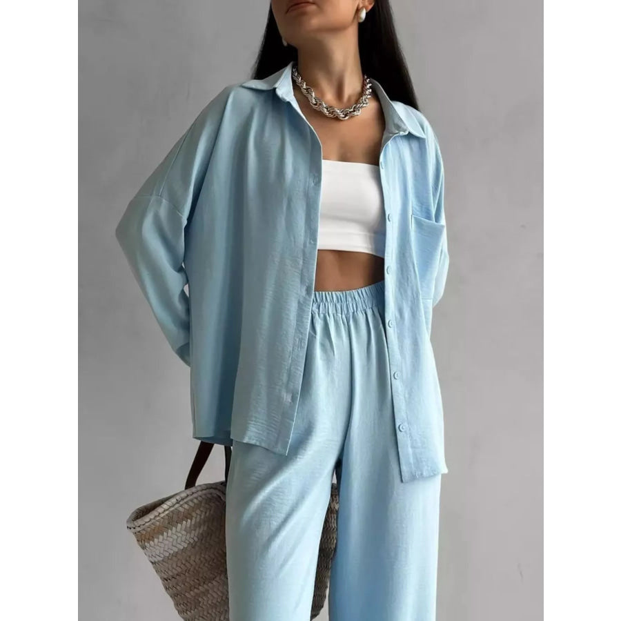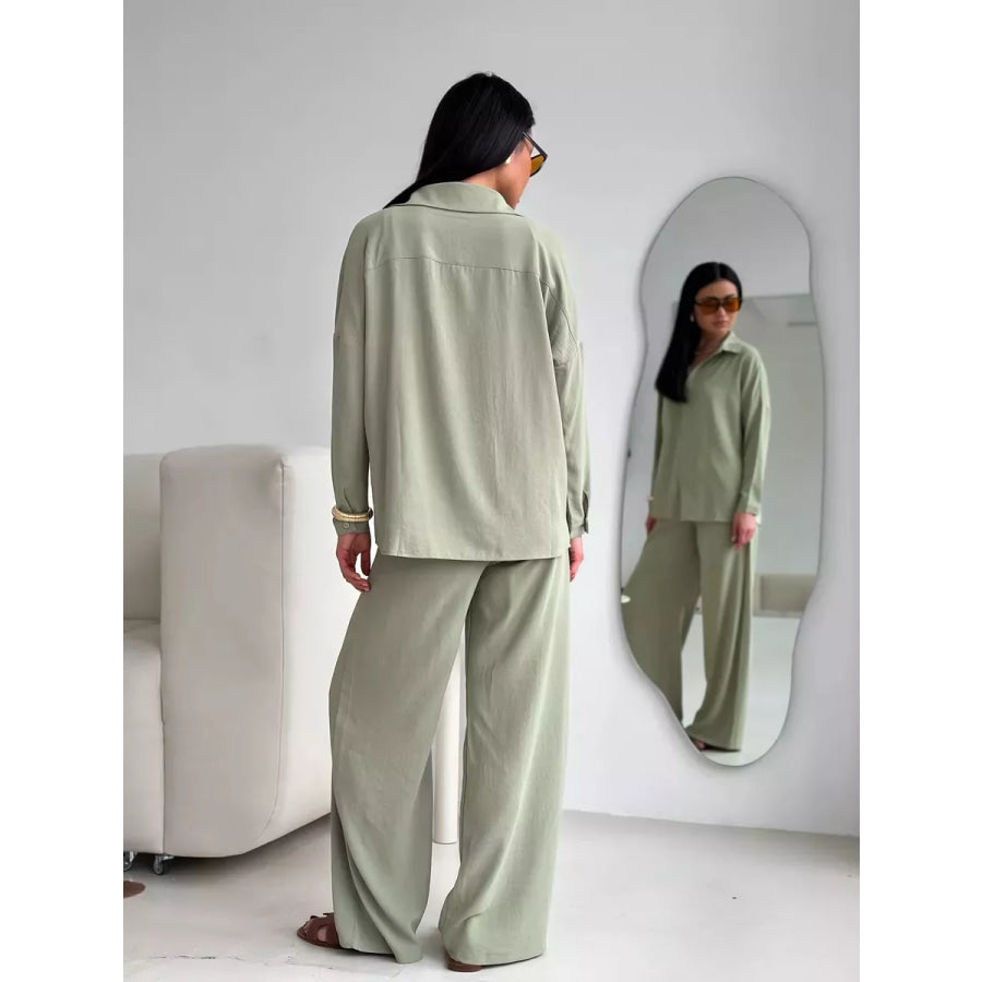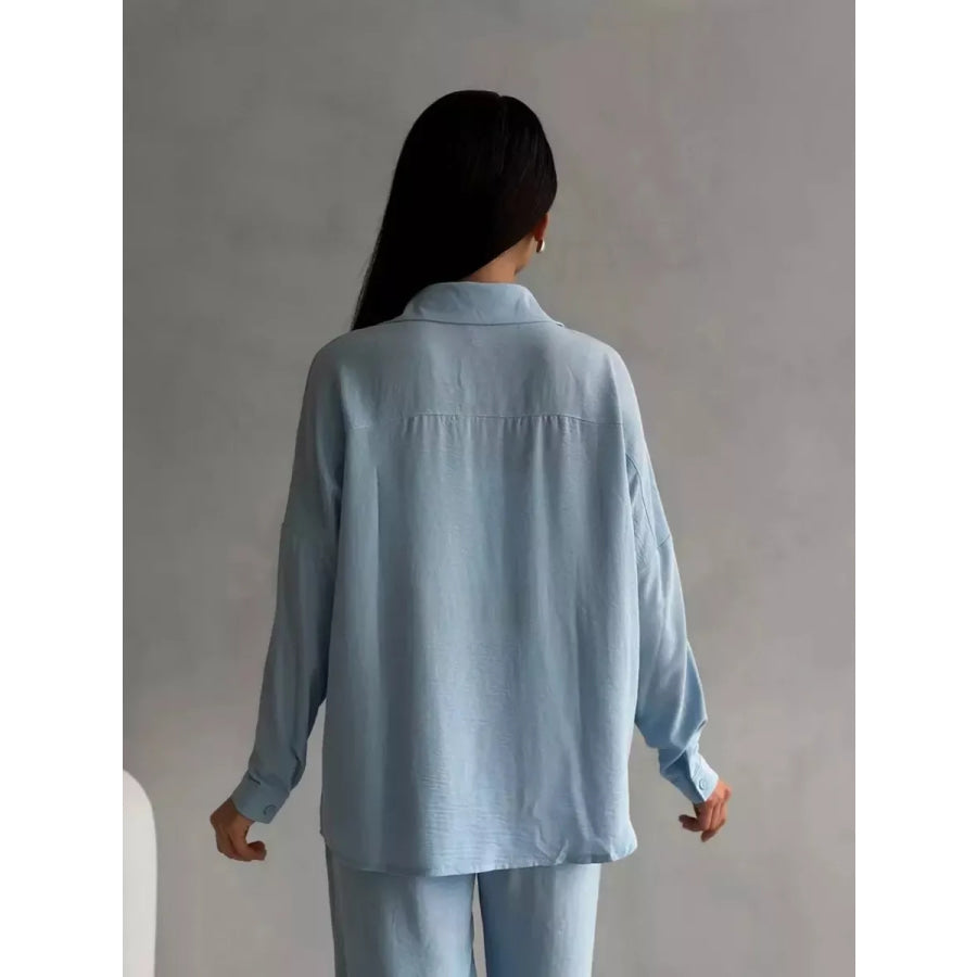 Button Up Long Sleeve Shirt and Pants Set