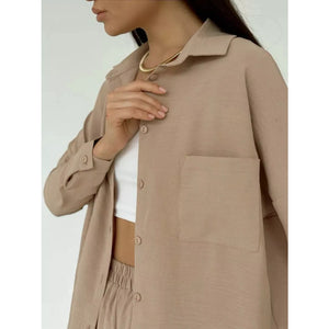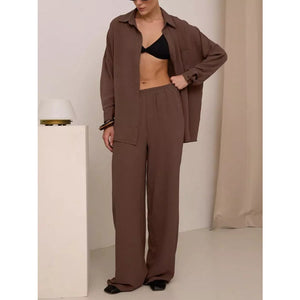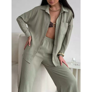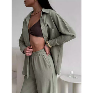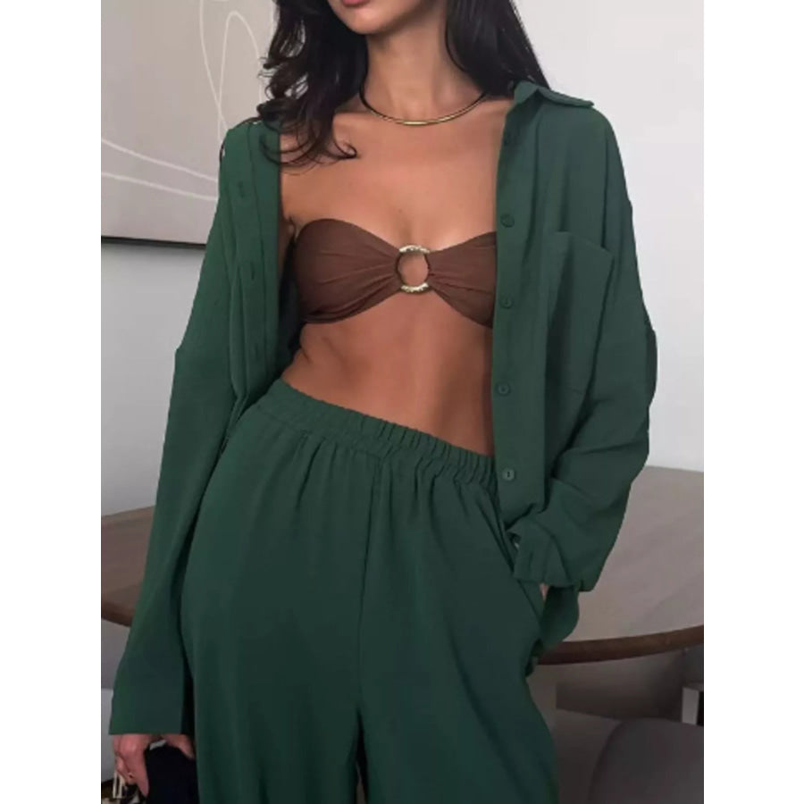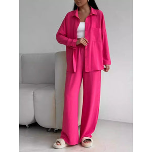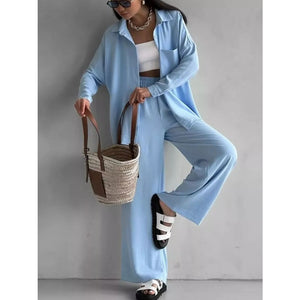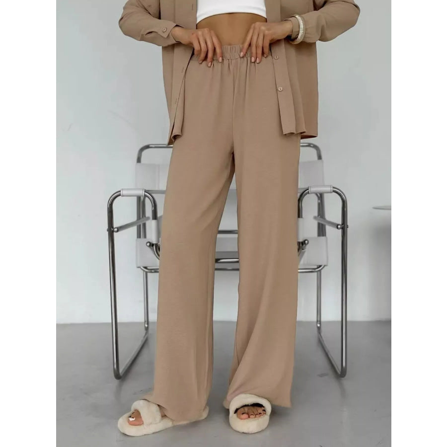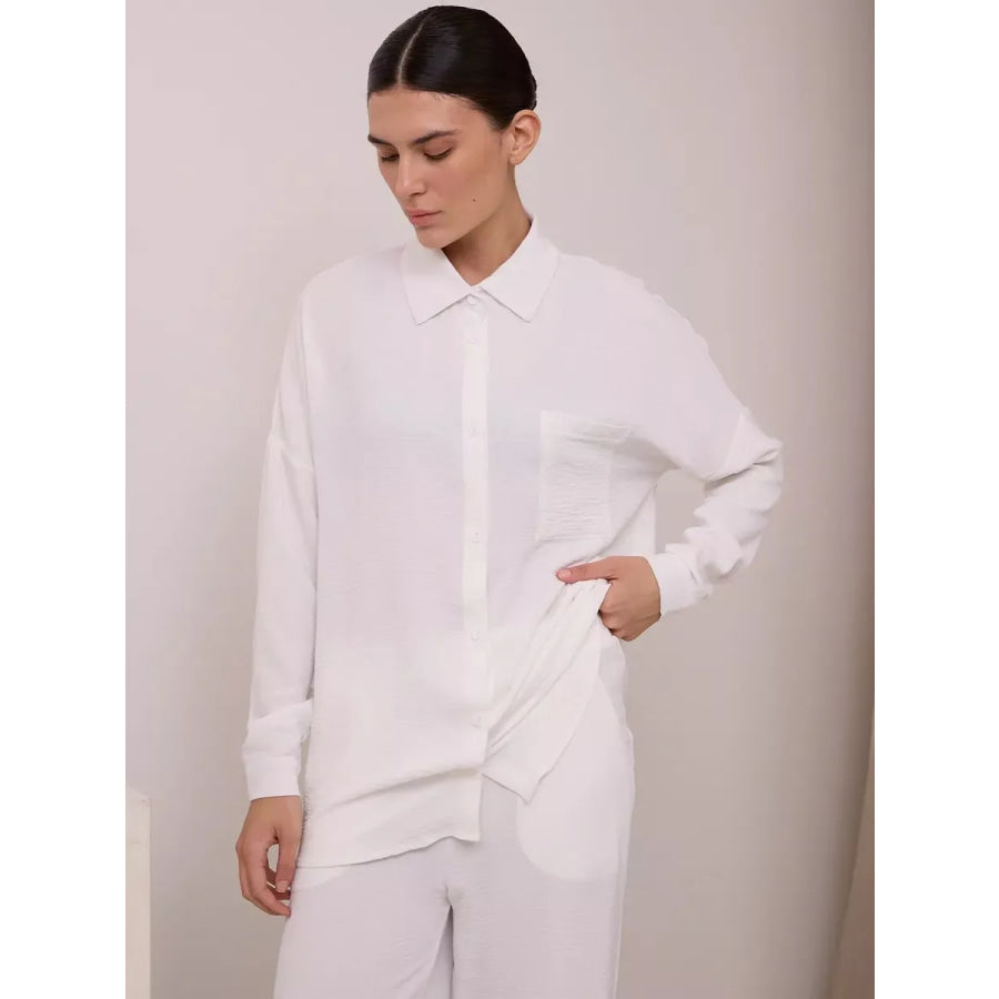 Button Up Long Sleeve Shirt and Pants Set
