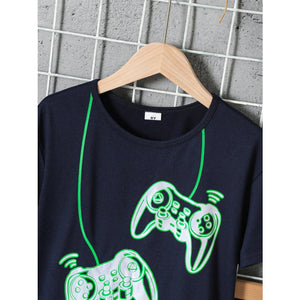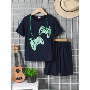 Children's Graphic Round Neck T-Shirt and Pants Set