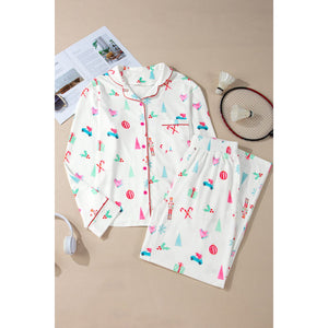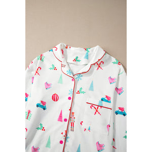 Christmas Printed Collared Neck Top and Pants Lounge Set