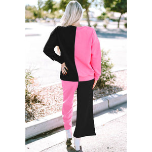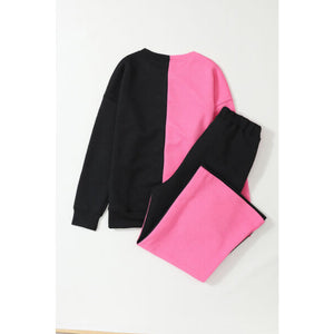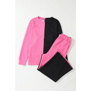 Color Block Round Neck Sweatshirt and Pants Set