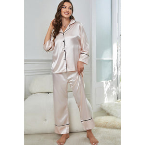 Contrast Piping Button-Up Top and Pants Pajama Set