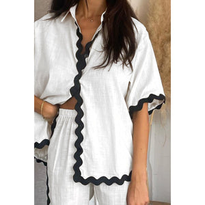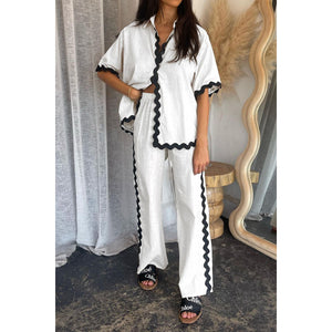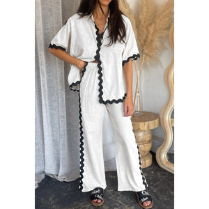 Contrast Trim Half Sleeve Top and Pants Set